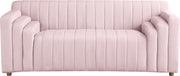 Express your bold, contemporary side with this Naya velvet love seat. This handsome piece is upholstered in pink velvet and blends seamlessly with the other units in the Naya collection, or it looks equally as beautiful on its own. Deep channel tufts run the length of the back, arms and seats of this unit, ensuring its exceptional comfort while giving it a decidedly modern vibe.