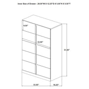 Inspired by Italian contemporary design, this five-drawer chest of drawers blends sculptural elegance with lasting performance. The white high gloss finish is laminated in PET, a high-performance thermoplastic known for its scratch resistance, moisture resistance, and long-term durability. Vertically mounted polished gold pulls add a bold accent, while five spacious drawers provide stylish storage for the modern bedroom. Key Features: • Five-drawer chest of drawers with bold vertical symmetry and Italian-inspired styling • Eco-friendly PET thermoplastic veneer is scratch-resistant and easy to maintain • PET surface resists moisture, heat, and UV exposure without yellowing or warping • Polished gold pulls are vertically mounted for sculptural elegance and contrast • Drawers feature English dovetail joinery and smooth operating metal glides • Fully assembled and includes tip-over restraint for added safety