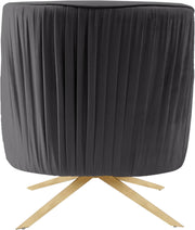 Add a bold touch to your living space with this grey velvet Paloma accent chair. Its roomy design, plush cushions and pillows ensure comfort while you sit, and its unique color is sure to catch the eye of all who visit your home. Soft velvet upholstery satisfies your textural senses, and a gold metal swivel base adds elegance while enabling you to turn freely while you sit and read your favorite book or drink a hot mug of coffee.