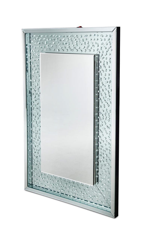 Silverlake Village Collection by AICO Furniture Washed Oak finish Mirror frame is made with stainless steel in a brushed nickel finish Frame feat...