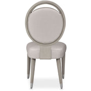 AICO Eclipse Side Chair (Set of 2) in Moonlight KI-ECLP003-135. Style comes full circle with the Eclipse Side Chair and Arm Chair! Designed with a rounded silhouette and delicately textured fabric, these chairs are here to make a statement.