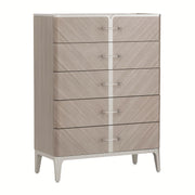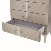 AICO Lanterna Highboy Chest in Silver Mist N9032070-823. You'll never run out of storage with the Lanterna Highboy Chest. Five full-size drawers and a stunning platinum finish is guaranteed to be the highlight of your day!