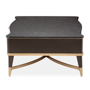 AICO Malibu Crest Rectangular Cocktail Table in Crotch Mahogany 9007201-411. Your luxury life is waiting on the coast with Malibu Crest. Showcasing creamy champagnes, dramatic curves and eclectic designs, this chic collection was made for interiors that embrace modern elegance.