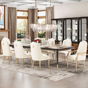 AICO Malibu Crest Rectangular Dining Table in Crotch Mahogany 9007000-411. Your luxury life is waiting on the coast with Malibu Crest. Showcasing creamy champagnes, dramatic curves and eclectic designs, this chic collection was made for interiors that embrace modern elegance.