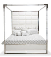 State St Queen Metal Canopy Bed in Glossy White