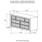 Makeover your bedroom with this upholstered dresser. Bursting with French Provincial style, it's the perfect blend of traditional and modern. Seven spacious dressers are equipped for storing garments and clothing. Each dresser drawer is upholstered with soft fabric and button tufting. Crystal-like accents serve as buttons and drawer knobs and this piece is supported on tapered legs, injecting incredible style in your space. Key Features: • Seven-drawer dresser upholstered in soft ivory velvet for a glamorous profile • Drawer faces are button-tufted with faux crystal accents for added sparkle • Champagne-finished tapered legs lend height and visual softness • Crystal drawer knobs coordinate with mirror and nightstand detailing • Top drawers are perfect for organizing accessories or fine garments • Engineered wood frame with padded velvet overlay and decorative hardware