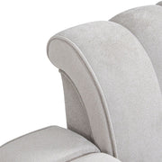 AICO Balboa Chair And A Half in Warm Walnut LFR-BLBA838-SHL-218. The sophisticated design of the stylish Balboa sofa and chairs has been brought to life using a beautiful light taupe chenille. Perfect for the family room to curl up with a book or watch your favorite movie. A wonderful blend of luxury style and functionality, a simple movement the sofa back adjusts to create a comfortable sleeping space for an overnight guest.