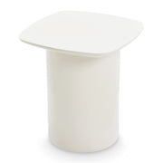 • The clean, cylindrical base and smooth, rounded square top give this accent table a minimal yet striking silhouette.