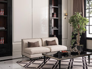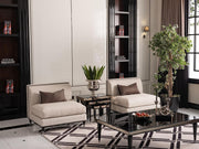 AICO La Francaise Armless Chair in Cafe/Black LFR-FRSE830-CAF-805. A versatile addition to the exquisite collection, the Armless Chair, is a perfect addition to any living space. Designed with versatility in mind, this chic chair allows for endless possibilities by effortlessly combining multiple armless chairs to create a larger, customizable seating arrangement.