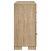 A study in understated elegance, this six-drawer dresser blends modern simplicity with everyday functionality. Its streamlined profile is finished in a soft light oak hue, complemented by antique nickel hardware for a subtle touch of shine. Crafted from engineered wood and finished in a scratch-resistant laminate veneer, it offers durability and beauty in equal measure. Six English dovetail drawers glide effortlessly on metal extension glides for seamless storage. Key Features: • Six-drawer dresser with modern lines and light oak finish for relaxed sophistication • Antique nickel hardware provides a subtle metallic accent to each drawer front • All drawers built with English dovetail joinery for added structure and durability • Smooth-gliding drawers with 35mm full-extension metal glides for daily function • Engineered wood frame wrapped in a scratch-resistant laminate veneer finish • Spacious surface and drawer layout offer functional bedroom clothing storage