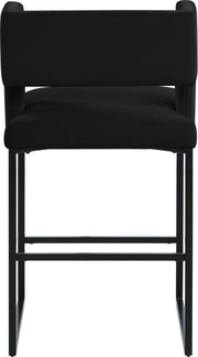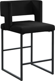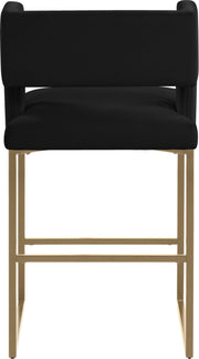 Add the Caleb black velvet dining chair to your dining room for the ultimate in comfort and style. This chair has a square seat and low back which is open at the bottom to the rear and on the sides. Four brushed gold square iron legs provide support and stability, while the chair's soft velvet and cushioning offer an air of luxury. Several available tables make a perfect companion to this contemporary piece.