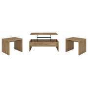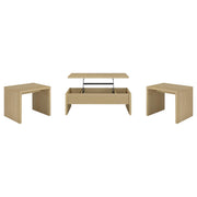 Rooted in clean geometry and modern ease, this coffee table set brings versatile function and understated style to any living space. The lift-top cocktail table offers hidden storage beneath a smooth surface that rises to meet your needs, while the coordinating end table features an open, minimalist form. With crisp lines, durable construction, and a warm woodgrain texture, this set blends casual utility with quiet sophistication for everyday living. Key Features: • Coffee table set with minimalist silhouettes and natural wood-inspired light oak finish • Lift-top coffee table features hidden storage for everyday essentials and remotes • Matching end table provides open sides and sturdy surface for lighting or décor • Flat tops offer generous space for books, trays, or casual entertaining • Crafted from engineered wood with melamine veneer for durability and easy care • Perfect for modern or transitional living rooms seeking functional, grounded design