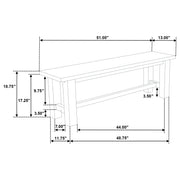 Simple, sturdy, and full of character, this dining bench brings rustic ease to everyday moments. Crafted from solid rubberwood and finished in warm vineyard oak, its clean lines and thick legs evoke the charm of farmhouse gatherings and the grounding beauty of natural materials. Whether paired with a table or used as a standalone accent, it invites connection, conversation, and shared comfort. Key Features: • Dining bench with rectangular seat and squared legs for rustic utility and balance • Vineyard oak finish highlights warm grain and farmhouse-inspired character • Crafted from solid rubberwood for strength, weight, and long-lasting use • Support bar beneath the frame adds structural reinforcement and stability • Sized for flexible use at a dining table, hallway, or bedroom end • Pairs easily with farmhouse, rustic, or casual transitional furniture styles