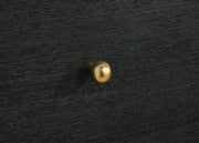 Augment bedroom storage with the plentiful drawer space and stylish presentation of this modern dresser and mirror combination. Its six large drawers facilitate easy organization of clothing and accessories. Each drawer is accentuated with ball knobs in a brass finish, offering warmth and contrast. The dresser and mirror each feature a black finish with rounded corners that soften the bold look and feel. The mirror pairs with a recessed base, each serving to lighten the overall look of this striking dresser. Key Features: • A modern six-drawer dresser and mirror provide plentiful bedroom storage and style • Features a black finish case and mirror frame with rounded corners for an inviting presentation • Charming petite ball knobs receive a brass finish, adding glamour and contrasting dimensionality • Made with melamine veneer that resists scratches and dents for excellent longevity and performance • Drawers feature metal extension glides for seamless performance and operation
