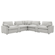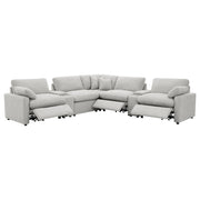 Transform your living space with the versatile modular sectional, designed to offer a perfect blend of comfort, style, and customization. This sectional features three power reclining pieces and two non-reclining pieces, allowing you to create your ideal seating environment. With the option to add additional power or non-power armless chairs, you can customize the layout to suit your room and preferences. Enjoy the plush comfort of premium down-like filled cushions and a sleek, modern design that enhances any decor. Experience the ultimate in relaxation with the power reclining pieces, featuring a 4-inch wall-hugging design for full recline without needing excessive space. Key Features: • Versatile 5-piece modular sectional with three power reclining pieces and two non-reclining pieces • Option to add additional power or non-power armless chairs for customizable layout • Premium down-like filled cushions provide luxurious comfort and support • Sleek, modern design enhances any decor • Power recliners feature a 4-inch wall-hugging design for full recline without needing excessive space