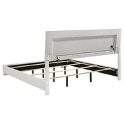 Illuminate your bedroom with the modern design of this LED bed. The headboard features a sleek white high gloss frame with built-in blue LED lighting, operated by a touch switch for convenience. The bed frame is upholstered in smooth white faux leather, enhancing its contemporary appeal. Designed for style and comfort, this bed brings a striking yet functional centerpiece to your space, blending modern aesthetics with subtle ambient lighting. Key Features: • Panel bed featuring a sleek, modern LED headboard design • White high gloss headboard frame with built-in blue LED lighting strip • Touch-activated switch provides effortless LED illumination control • Bed frame upholstered in smooth and durable white faux leather • Sturdy construction ensures lasting support and structural integrity • Contemporary design blends stylish aesthetics with ambient lighting effects