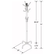 This metal coat rack offers practical storage with a timeless silhouette, finished in classic black. It features multiple tiers of curved hooks at staggered heights for hanging coats, hats, bags, and scarves. A decorative finial at the top adds a traditional touch, while the four-legged base provides stable, balanced support. Ideal for entryways, offices, or mudrooms, this coat rack combines convenience with space-saving function. Key Features: • Freestanding coat rack made from metal with a tall, slender profile • Classic black finish complements a variety of entryway or office interiors • Multiple tiers of curved hooks offer generous space for coats, hats, and bags • Decorative top finial adds a touch of traditional design • Four-leg base provides durable support and tip-resistant stability • Ideal for organizing outerwear in foyers, hallways, or shared spaces