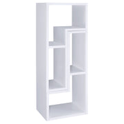 Perfect for a variety of uses, this two-piece bookcase and TV console is fabulously versatile. It allows you to switch between various bookcase and TV stand configurations for your convenience. Bold, L-shaped shelves are arranged in striking geometric designs for a modern look. A white finish enhances its contemporary appeal. Crafted from top quality materials, this bookcase is sturdy, stylish, and smart. Key Features: • An asymmetrical arrangement of shelves creates an intriguing silhouette while offering ample storage space • Two-piece bookcase with an attractive L-shape design • Constructed with MDF, particle board, and laminate • Versatile design allows you to switch between various bookcase and TV stand configuration • Available in cappuccino, white, and grey driftwood