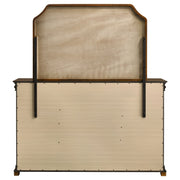This eleven-drawer dresser with mirror refreshes a classic Louis Philippe silhouette with thoughtful detail and everyday luxury. Nine spacious drawers offer daily organization, while two hidden felt-lined drawers and cedar-lined bottom drawers provide protection for delicate and seasonal items. Crown molding, oval ring pulls, and a shaped mirror frame complete the look. Built from solid rubberwood, engineered wood, and cherry veneer for long-lasting elegance. Key Features: • Dresser with mirror features nine main drawers and a shaped crown-framed mirror • Brown cherry finish highlights the classic Louis Philippe-inspired profile • Antique nickel oval ring pulls offer a timeless touch of traditional elegance • Two hidden felt-lined drawers keep valuables secure and discreetly stored • Cedar-lined bottom drawers help preserve clothing by resisting odor and moisture • Crafted from solid rubberwood, engineered wood, cherry veneer, plywood, and mirror