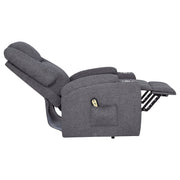Gracefully merging comfort, function, and care, this power lift massage chair offers a luxurious retreat at the touch of a button. Wrapped in soft chenille, its plush silhouette supports you with gentle recline, heated massage, and a smooth lift mechanism—perfect for easing into or out of relaxation. Dual stainless steel cup holders and side storage pockets provide thoughtful utility, making it a serene and supportive haven for everyday unwinding. Key Features: • Power lift massage chair in dark grey chenille offers wired remote-controlled recline and lift • Heat and vibration massage functions provide soothing comfort at the touch of a button • Stainless steel cup holders on both arms keep beverages secure and accessible • Side storage pockets on both sides hold remotes, reading material, or small essentials • Plush cushioning with supportive back and pillow-top arms enhances everyday comfort • Ideal for those seeking independence, recovery support, or elevated daily relaxation