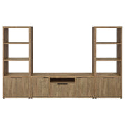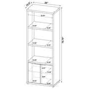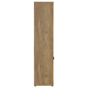 The best of both worlds, a charming media tower bookcase adds both open display space and hidden storage in your inviting living room. Featuring a melamine paper finish that resembles mango wood, complete with roughhewn saw marks for a realistic, textured presentation, the tower is a perfect choice alone or flanking the matching TV stand. Three upper shelves provide a place for photos and art and glasswork, or can be used to display favorite media. Underneath, a two-door cabinet reveals additional shelving for easy organization of accessories and other odds and ends you'd prefer tucked out of sight. Sleek black pull handles are a perfect finishing touch. Key Features: • Charming media tower bookcase adds open display and hidden storage • Melamine paper finish resembles mango wood with roughhewn saw marks • Three upper shelves for photos, art, and glasswork • Two-door cabinet with additional shelving for accessories and odds and ends • Sleek black pull handles for a perfect finishing touch