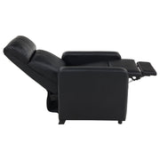 Settle into luxurious comfort with this push back recliner, designed to bring modern elegance to a living room or home theater. Upholstered in smooth black leatherette, it features a clean silhouette with stitched details for a refined touch. Plush headrest and supportive armrests provide lasting relaxation, while pocket coil seating and a cool gel memory foam topper enhance comfort. Sturdy construction ensures durability, making this recliner a versatile choice for daily lounging or cinematic evenings._x005F_x000D_ Key Features: • Push back recliner in black leatherette with modern design for home theater seating • Plush headrest and padded armrests deliver relaxation and enhanced comfort • Pocket coil seating ensures long-lasting support for everyday lounging use • Cool gel memory foam topper provides extra cushioning and temperature regulation • Smooth stitched details down the center add a refined modern tailored appearance • Crafted with foam, hemlock, metal, plastic, and leatherette for durability and style