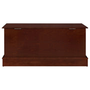 A wood storage chest is a necessary accoutrement to any home. This engineered wood chest has simple elegant lines and a sturdy demeanor. Roomy enough for a collection of seasonal bedding or family photo albums. If you're storing surprise gifts for an upcoming birthday or even for the holiday season, you'll be happy that the lid features a lock. Richly finished in warm brown. Key Features: • Engineered wood construction with simple, elegant lines and sturdy demeanor • Spacious interior for seasonal bed linens, family heirlooms, or photo albums • Adds character and practicality to any room in the house • Warm brown finish adds warmth and charm to any setting • Essential addition to any home for practical and stylish storage
