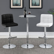 Elevate your home bar or kitchen with this sleek adjustable bar stool, designed to combine comfort and style effortlessly. Upholstered in durable faux leather with tufted detailing, this stool offers a chic, modern look that’s easy to maintain. The hydraulic gas lift allows for easy height adjustment, ensuring a perfect fit for any counter or bar. A sturdy chrome base and footrest provide stability and support, enhancing the stool’s contemporary appeal. Enjoy a sophisticated seating option that brings both function and flair to your space. Key Features: • Adjustable bar stool with hydraulic gas lift for custom height • Faux leather upholstery with tufted design adds modern elegance • Chrome base and footrest provide sturdy support and style • Sleek, armless design perfect for kitchen islands and bars • Easy-to-clean surface for convenient upkeep • Ideal for modern and contemporary decor settings