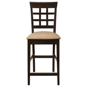 This counter height chair brings casual elegance to your kitchen or dining space with its clean-lined silhouette and geometric charm. A grid-style lattice backrest adds visual texture, while the padded seat offers soft support for extended seating. Crafted from solid rubberwood and engineered wood, it ensures strength and everyday reliability. Perfect for gathering at your island or pub table, it combines comfort, structure, and approachable style. Key Features: • Enjoy a casual dining experience with the Clanton chestnut counter height chair, perfect for when sitting at the table feels too formal • Enjoy the comfort of the padded seat and backrest, upholstered in a soft, durable fabric • Appreciate the classic style of the chestnut finish and the sturdy construction of the solid wood frame • Easily move the chair around with the convenient footrest and the built-in handle • Enjoy the convenience of the chair's easy assembly and its ability to fit in any room