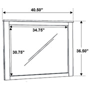 Upgrade the warmth and tranquility of your bedroom with this impressive transitional 4-piece bedroom set featuring storage bed, nightstand, dresser, and mirror that brings a blend of classic style and modern conveniences. Each piece is crafted with a full matte rustic golden brown finish that includes beautiful wire brushed wood grain detail. The platform-style bed features an imposing headboard and two-drawer storage footboard. The drawers in the footboard and on each case piece are crafted with wooden pull handles. Solid block legs on each of the pieces, save for the mirror, add the final detail to this magnificent bedroom set.