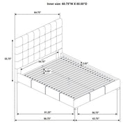 Striking the perfect balance between elegance and edge, this platform bed brings sculptural calm to the modern bedroom. A tall, grid-tufted headboard offers visual rhythm and tailored softness, while smooth, low-profile rails wrap the frame in sleek refinement. Fully upholstered in genuine leather and supported by a built-in slat system, it provides lasting comfort without the need for a foundation—crafted to anchor the room with quiet confidence and bold presence. Key Features: • Queen platform bed with tufted headboard and sleek silhouette for refined structure • Black genuine leather upholstery adds bold texture and crisp tailored elegance • Grid tufted headboard adds structure and refined texture across the full width • Low-profile side rails offer modern framing and uninterrupted lines • Slatted base supports mattress without box spring or added foundation • Crafted from hardwood, engineered wood, foam, and 100% genuine leather