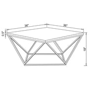 Enhance your living space with this modern square coffee table, featuring a striking white faux marble top and a geometric metal frame in a luxurious gold electroplated finish. The openwork design provides an airy yet bold aesthetic, perfect for contemporary interiors. This cocktail table delivers both style and functionality while requiring no assembly for immediate use. Ideal for creating a chic focal point in any living room setup. Key Features: • Square coffee table featuring a smooth white faux marble top for sleek appeal • Elegant gold electroplated geometric metal frame offers a luxurious touch • Durable faux marble top ensures low maintenance and long-lasting use • Openwork base design enhances modern aesthetics and airy sophistication • Ready-to-use design with no assembly required, saving time and effort • An ideal centerpiece for minimalist or contemporary living room decor
