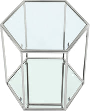 This SEI end table puts you in complete control of the look of your space. Use a single table for a small space, or put together two or more tables for an expanded look when game night requires extra room for you to spread out. The beautiful chrome frame holds a glass top with mirrored base and parallel mirrored bottom shelf. The modular design lets you connect as many tables as you need for a custom solution to your requirements.