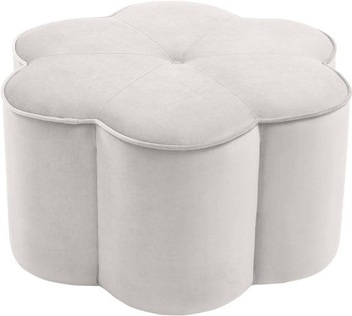 Bring a whimsical touch to your space with this fun Clover velvet ottoman. Beautifully soft cream velvet upholstery covers the exterior of this ott...