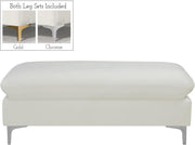 Prop your feet and legs up like a boss with this Naomi cream Velvet Ottoman as the newest addition to your home decor plans. This elegant ottoman is covered in rich velvet to provide a neutral style boost to your room while pampering your feet in comfort at day's end. Customize its look with your choice of gold or chrome legs; both are included so that you can give this plush stool a personalized spin. Place it at the foot of the bed for a regal look, add it to a foyer for a spot to rest while putting on shoes, or bring it into the living room for an extra seat as needed.