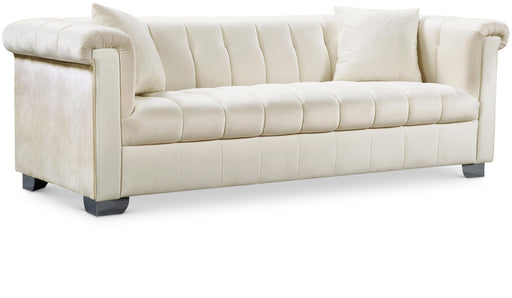 Elijah Cream Velvet Sofa - Soft Cream Velvet - Deep Channel Tufting - Contemporary Design -