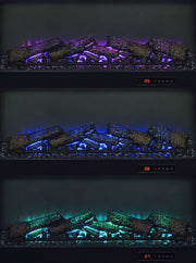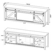 Rustic design meets modern warmth in this fireplace TV stand, featuring a realistic ember display and a convenient wireless remote. The dark pine finish and black metal accents frame a charming barn door aesthetic, with sliding doors that conceal adjustable shelving on each side. Thoughtfully designed for both function and style, this entertainment console includes cord management cutouts and supports TVs up to 80 inches with ease. Please note that there is no heat function included. Key Features: • Fireplace TV stand in dark pine finish with black metal accents and sliding barn-style doors • Center fireplace insert without heat function and glowing ember display for cozy ambiance • Wireless remote lets you control flame brightness, and power with ease • Each barn door slides open to reveal an adjustable shelf for concealed media storage • Cord management cutouts keep electronics organized and cables hidden from view • Supports flat panel TVs up to 80 inches and built from engineered wood and melamine veneer