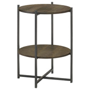 Blending modern simplicity with functional design, this two-tier round accent table is a versatile addition to any space. Crafted from eco-friendly solid mango wood, the natural-finish tabletops bring warmth and organic charm, while the sleek gunmetal-finished iron frame provides a contemporary touch. The open bottom shelf offers additional space for books, plants, or decorative accents, making it perfect for small spaces. With its slim X-shaped base, this table is ideal as a side table, nightstand, or plant stand, seamlessly complementing modern, industrial, and rustic interiors. Key Features: • Round two-tier accent table with a sleek, space-saving design • Solid eco-friendly mango wood shelves with a natural finish • Gunmetal-finished iron frame for a modern industrial look • Bottom shelf provides extra storage and display space • Compact size makes it ideal for nightstands, side tables, or plant stands • Blends seamlessly into modern, rustic, and industrial interiors