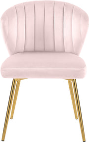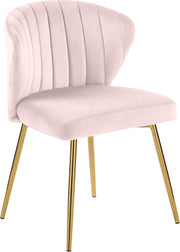 This Finley velvet chair, with its all-over soft pink velvet upholstery, offers elegance and sophistication for your dining room. Designed to elevate your room���s d?�cor in an instant, this seat oozes refinement and beauty with its curved and channel-tufted back and rich gold metal legs. Pair this lovely Finley chair with your favorite contemporary dining table for a seamless presentation.