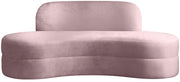 Relax and unwind from the soft comforting confines of this Mitzy velvet sofa. This elegantly eye-catching chair has a lot to offer with its uber contemporary design and its soft pink velvet. Its unique kidney-shaped design lends it to modern d?�cor themes with ease, and the upholstered base provides sturdy support for you as you sit and destress in front of the TV.