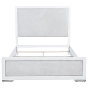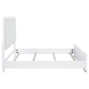 This panel bed pairs crisp framing with soft textures for a look that feels both refined and restful. The panel-style headboard and footboard are upholstered in light grey fabric with subtle herringbone texture, bordered by a clean white frame and finished with brushed nickel feet. Crafted from solid rubberwood, engineered wood, and foam padding, it offers visual contrast and supportive comfort. Foundation required. Key Features: • Queen bed with paneled silhouette and framed upholstery for soft modern contrast • White finish outlines light grey fabric headboard and footboard for clean structure • Upholstered in textured light grey fabric with soft padded foam backing • Brushed nickel feet provide shine and elevate the crisp modern frame • Crafted from solid rubberwood, engineered wood, fabric, and foam • Foundation is required for optimal mattress support and elevation