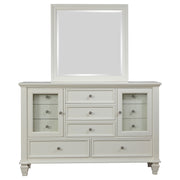 Elevate your bedroom’s style and functionality with this elegant dresser and mirror set. The dresser offers two wood-framed tempered glass doors and an abundance of storage with 11 spacious drawers, including felt-lined top drawers for your delicate items. Paired with the dresser is a beautifully framed mirror, designed to enhance the sense of space and light in your room. Finished in a neutral color and constructed from solid hardwood and engineered wood, this set combines timeless design with modern functionality. Brushed nickel hardware adds a touch of sophistication, making this dresser and mirror set a refined and practical centerpiece for any bedroom.