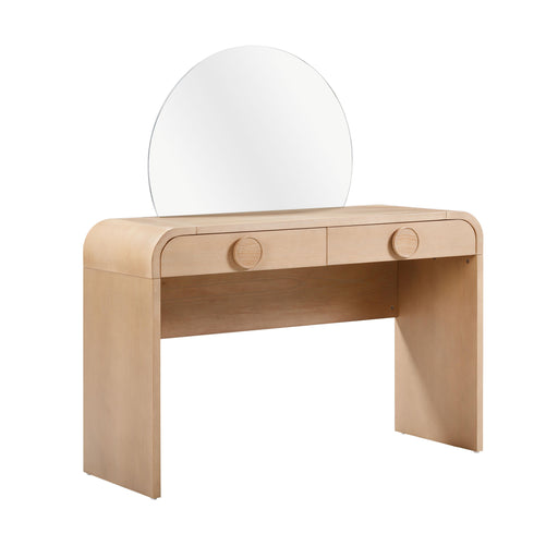 Meet the Moonrise Natural Ash 2-Drawer Vanity Desk, a versatile and chic addition to your space. The included circular mirror is removable, transfo...