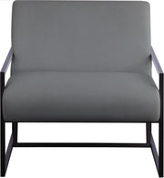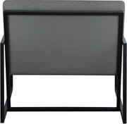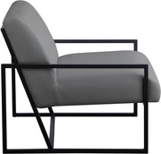 Feel like a boss whenyou'rere seated in this Industry faux leather accent chair. This handsome chair catches the eye instantly with its softy grey faux leather upholstery on the seat and back, both of which are padded for total comfort. The matte black metal frame lends it a definitive contemporary vibe while giving the chair a long-lasting design and sturdy demeanor.