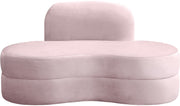 Relax and unwind from the soft comforting confines of this Mitzy velvet love seat. This elegantly eye-catching chair has a lot to offer with its uber contemporary design and its soft pink velvet. Its unique kidney-shaped design lends it to modern d?�cor themes with ease, and the upholstered base provides sturdy support for you as you sit and destress in front of the TV.