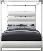 Give your bedroom a modern makeover with this Encore white faux leather queen bed. Eye-catchingly elegant, this bed features a boxy canopy design for a grand presentation in your space. Acrylic posts add a contemporary feel to the bed's overall look, and the heavily padded headboard is upholstered in soft white faux leather that's durable and tough yet gives the same supple effect as real leather. The matching footboard is also padded for a cohesive presentation in your room.