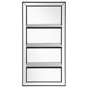Present decor, bedroom essentials, and more along this modern glam wall mirror. Designed with an elongated, vertical mounting silhouette, this elegant wall mirror offers three narrow shelves to keep anything from perfumes to family photos. Covered entirely in a mirror tile, this wall mirror offers a dark tone edge that offers a defined contrast against the reflective mirror surfaces. A slim beveled edge along the outer mirror frame creates a classical aesthetic and hint of texture. Mount this wall mirror in a compact space to give the illusion of a more spacious interior.