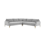 The Serena Collection makes modern design soft and cozy and is sure to become your favorite spot. This 3-piece sectional—left-arm loveseat, right-arm loveseat, and corner chair—is upholstered in a luxurious gray distressed velvet for lots of texture, and is available in three colors. The clean lines are complemented by tall metal legs finished in brass. Enjoy our preset configurations or customize your own design - the Serena is the sectional you have been looking for.