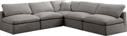 No matter how big or little the size of your gang, they can all find their sweet spot when you choose pieces from the Plush collection to build your ideal seating group. Choose this four-piece set or pair multiple pieces together to get the custom look everyone will love. The soft grey velvet material is soft and welcoming to the touch, and the set���s cushions are overstuffed with a down and feather blend to provide ample support for tired bodies.
