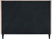 Snuggle up to a pet or other loved one in this richly upholstered Eva pink velvet queen size bed for the ultimate in rest and relaxation. The wing back headboard has cushioned vertical deep channel tufting, and both the side rails and footboard are upholstered too for your comfort. Tapered black wood legs match the upholstery and support this contemporary bed, elevating it sufficiently that you can store items underneath.